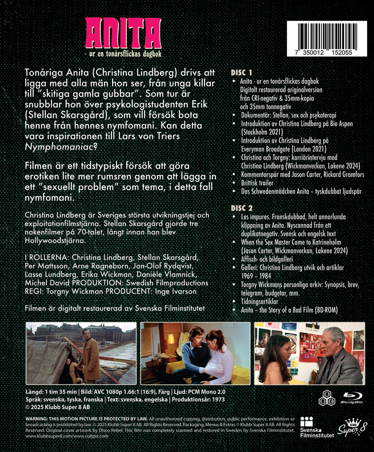 Christina Lindberg (Thriller – a Cruel Picture) is Anita, a teenage nymphomaniac who feels compelled to have sex with every man she meets – from young guys to “dirty old men”. She stumbles on psychology student Stellan Skarsgård (a long time before Pirates of the Caribbean, Avengers, Dune and Star Wars: Andor) who tries to cure her.