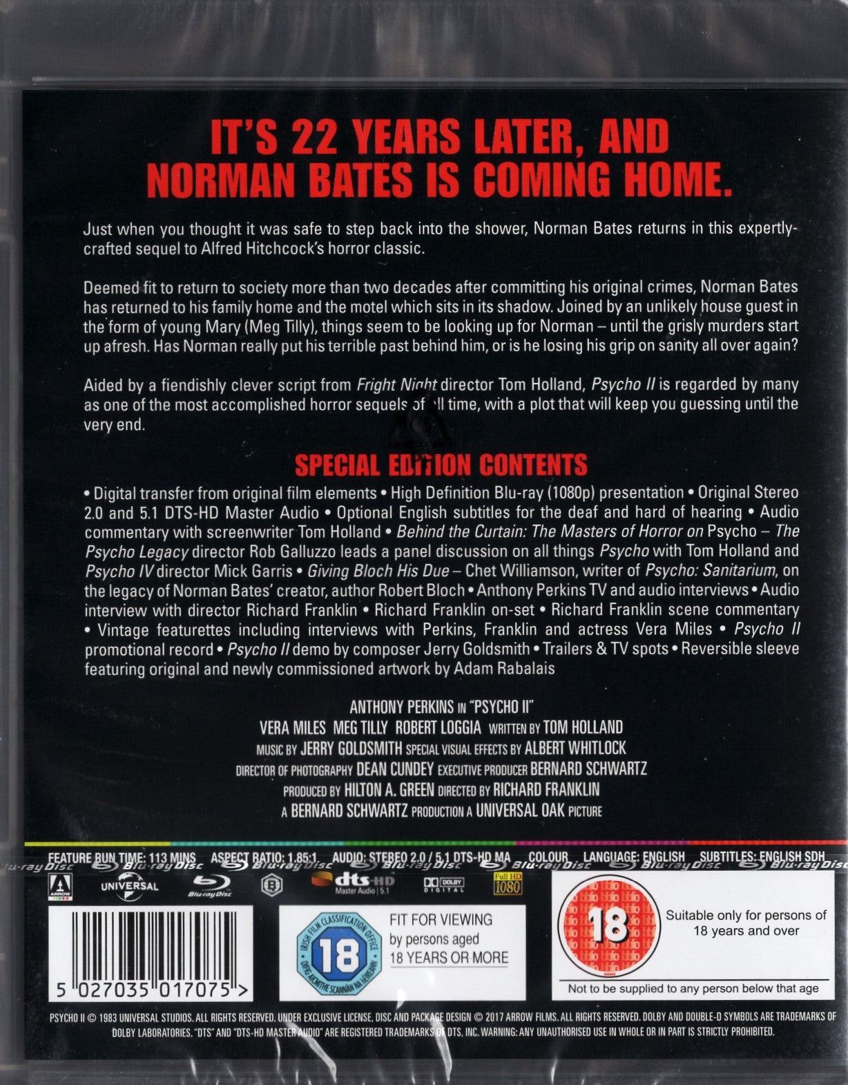 Just when you thought it was safe to step back in the shower, Norman Bates returns in this expertly crafted sequel to Alfred Hitchcock s acclaimed horror classic. Deemed fit to return to society more than two decades years after his original crimes, Norman Bates has returned to his family mansion and adjacent motel. Joined by an unlikely house guest in the form of young Mary (Meg Tilly), things seem to be looking up for Norman until the grisly murders start up afresh. Has Norman really put his terrible past behind him, or is he losing his grip on sanity all over again?