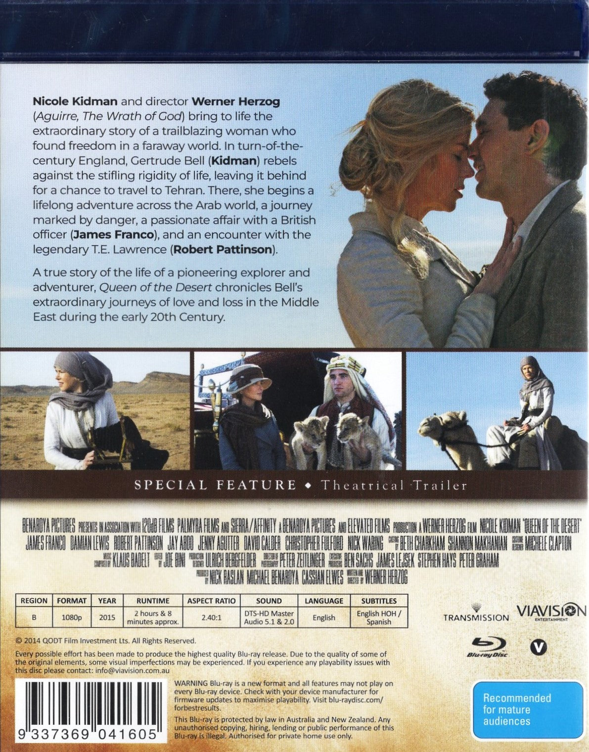 Nicole Kidman and director Werner Herzog (Aguirre, The Wrath of God) bring to life the extraordinary story of a trailblazing woman who found freedom in the faraway world of the Middle East. In turn-of-the-century England, Gertrude Bell (Kidman) rebels against the stifling rigidity of life, leaving it behind for a chance to travel to Tehran. There, she begins a lifelong adventure across the Arab world, a journey marked by danger, a passionate affair with a British officer (James Franco), and an encounter with the legendary T.E. Lawrence (Robert Pattinson).