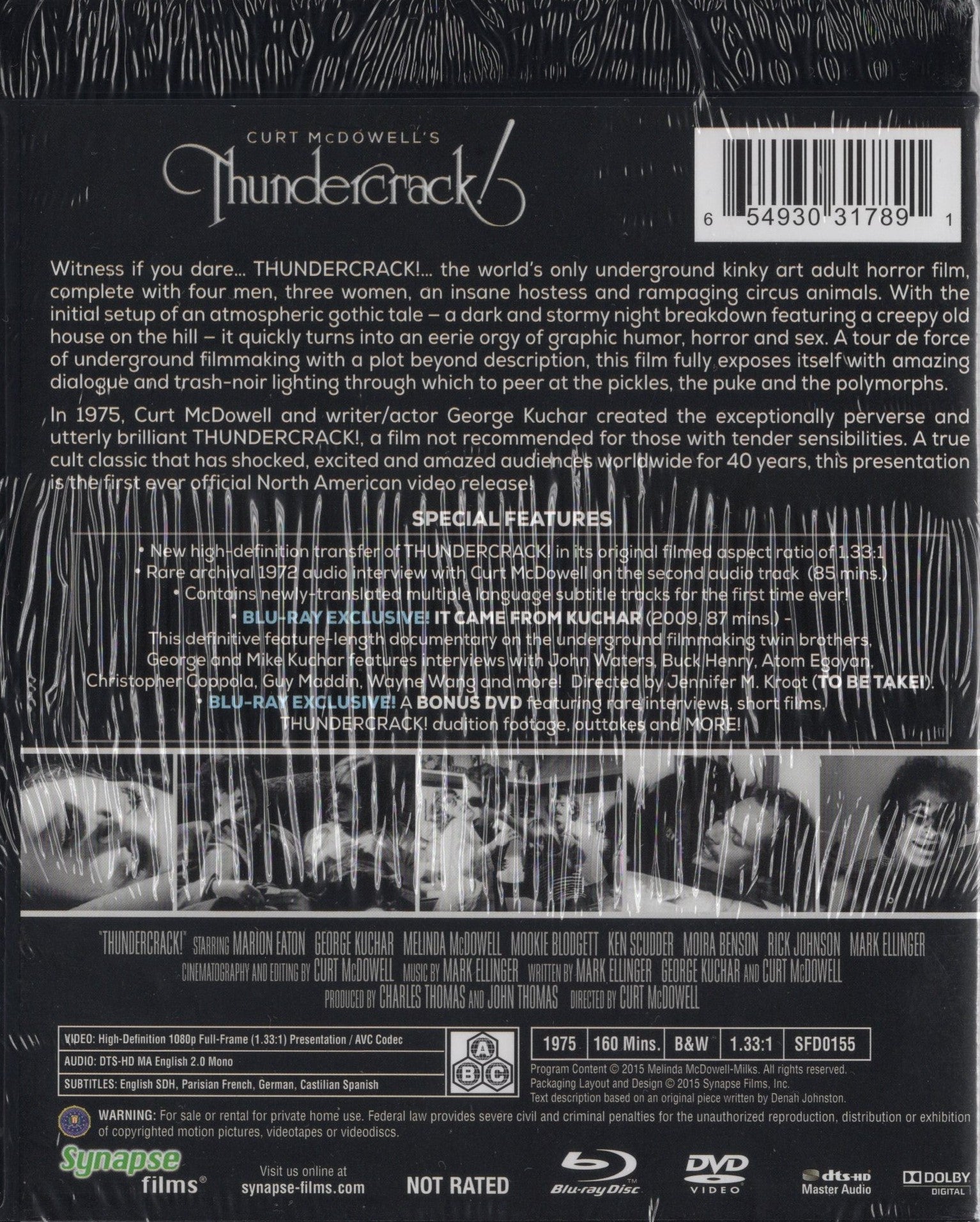 Vuonna 1975 Curt McDowell ja kirjailija/näyttelijä George Kuchar loivat poikkeuksellisen perverssin ja äärimmäisen loistavan THUNDERCRACK!-elokuvan, jota ei suositella herkille. Todellinen kulttiklassikko, joka on järkyttänyt, innostunut ja hämmästyttänyt yleisöä maailmanlaajuisesti 40 vuoden ajan!